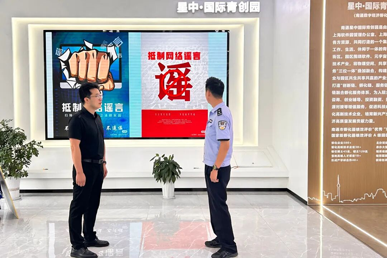 为切实守护园区企业及青年创业者的财产安全与精神家园,近日,狼山镇街道派出所联合星中国际青创园开展“抵制谣言反邪教,精准反诈护发展”主题宣传活动,为入驻企业送上全方位的安全防护指南。