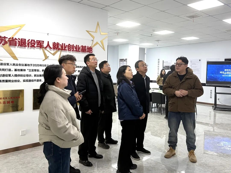 考察团首站来到园区大厅,通过工作人员的讲解全面了解南通市退役军人创业创新基地的建设背景、运营模式及服务体系。随后,考察团移步二楼展厅,参观退役军人就业创业成果展,深入了解基地在项目孵化、技能培训、就业对接、创业大赛辅导等方面的实践成果。过程中,双方围绕基地基金配套机制、产学研协同创新路径、退役军人创业扶持政策落地等关键话题展开热烈探讨,分享经验做法,凝聚发展共识。
