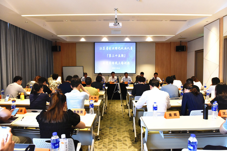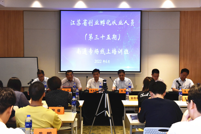 6月23日,第三十五期江苏省创业孵化从业人员培训班(南通线上班)开班,上午9:00,在星中国际青创园美沁酒店举行了简短的开班仪式。