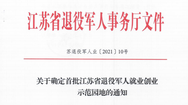 | 国际青创园荣获首批江苏省退役军人就业创业示范园地 | |