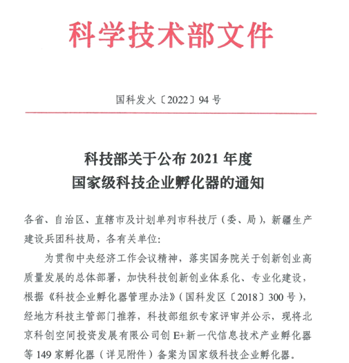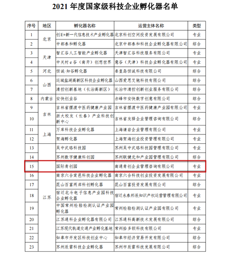 日前,科技部公布了2021年国家级科技企业孵化器名单,国际青创园赫然在列,被认定为专业类国家级科技企业孵化器。